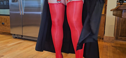 Well worn Red Super Shiny Oil Skin Pantyhose