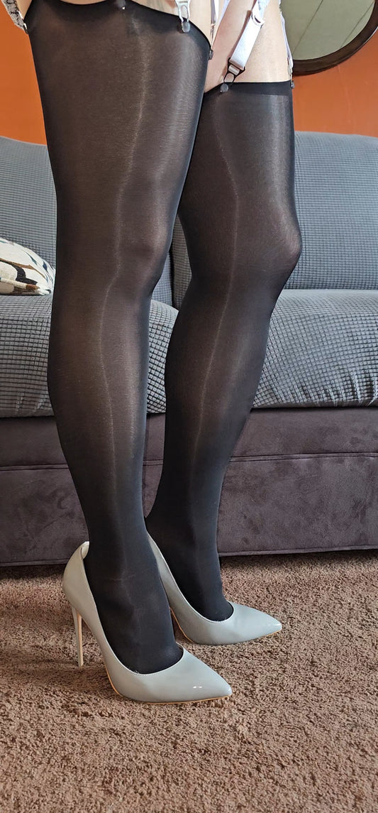 Well worn Gray Super Shiny Oil Skin Pantyhose